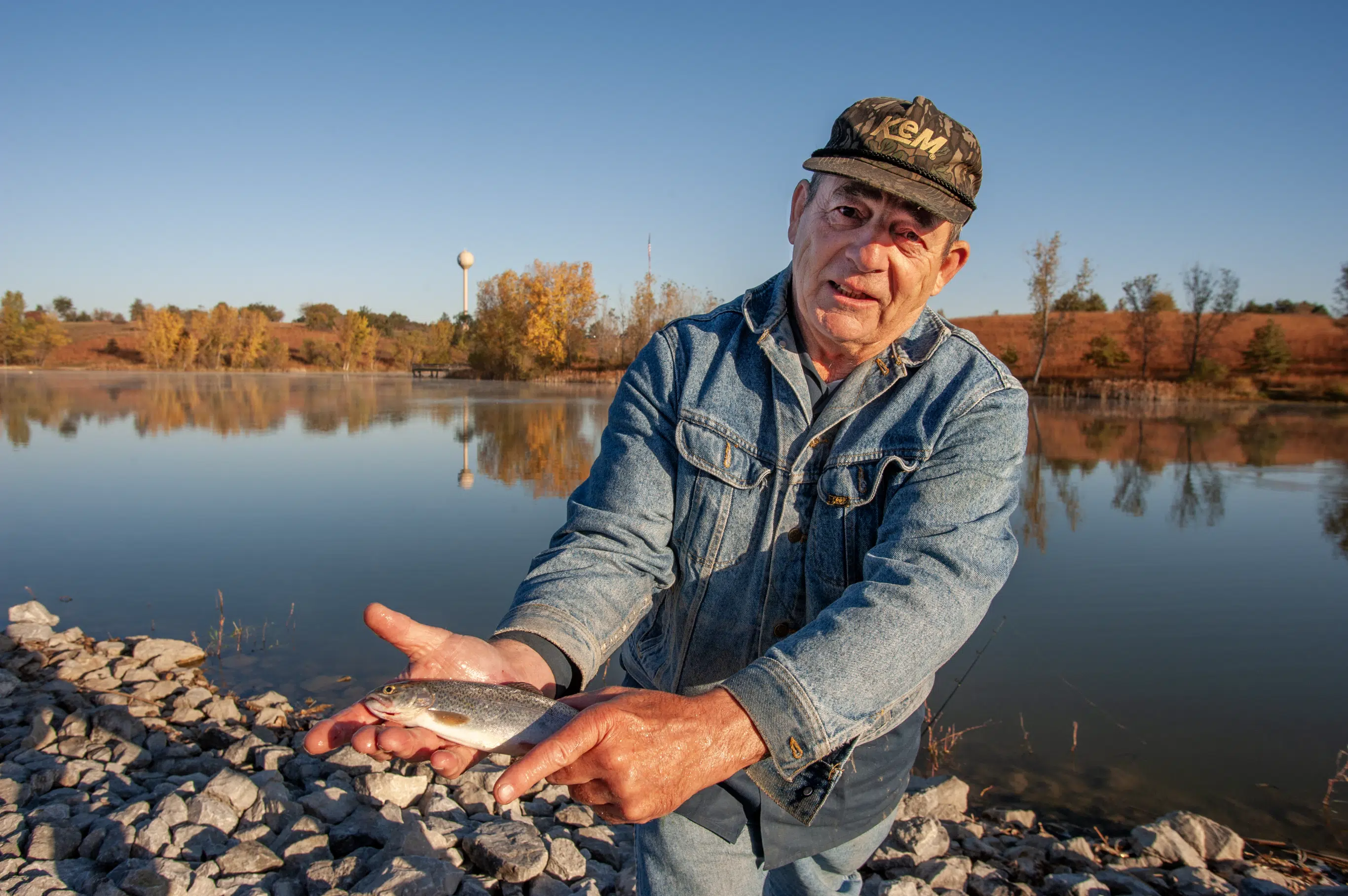 Rainbow trout are stocked in the fall for all ages to enjoy at lakes such as CenturyLink Lake at Eugene T. Mahoney State Park. (Eric Fowler/Nebraskaland Magazine, Courtesy)