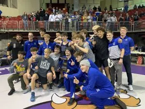 Kearney Wrestling celebrates the Flatwater Fracas Tournament win // Courtesy NEBWrestle