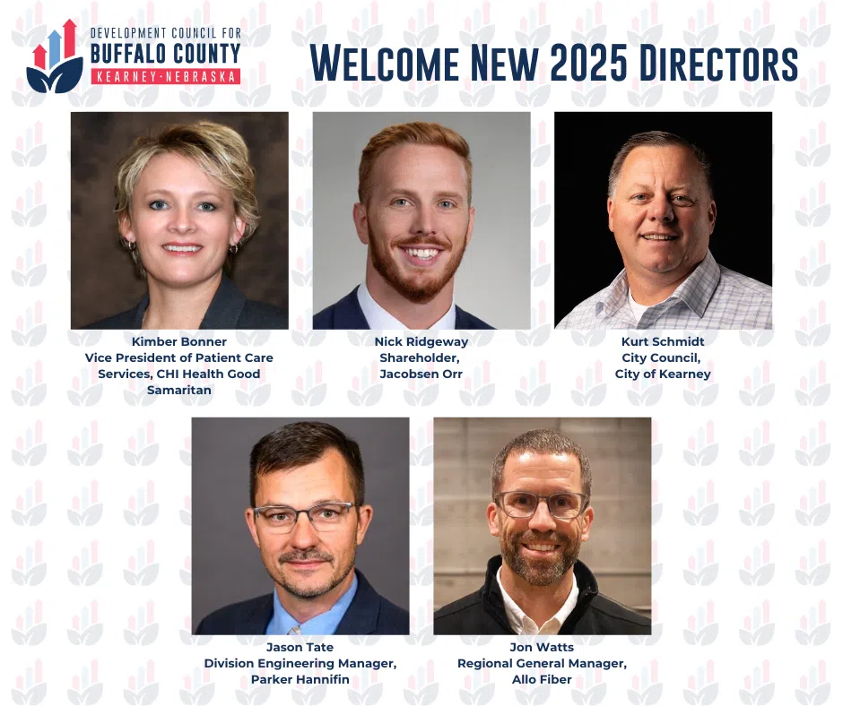 KEARNEY — The Development Council for Buffalo County is pleased to announce the addition of five distinguished professionals to its Board of Directors, and the appointment of new officers.