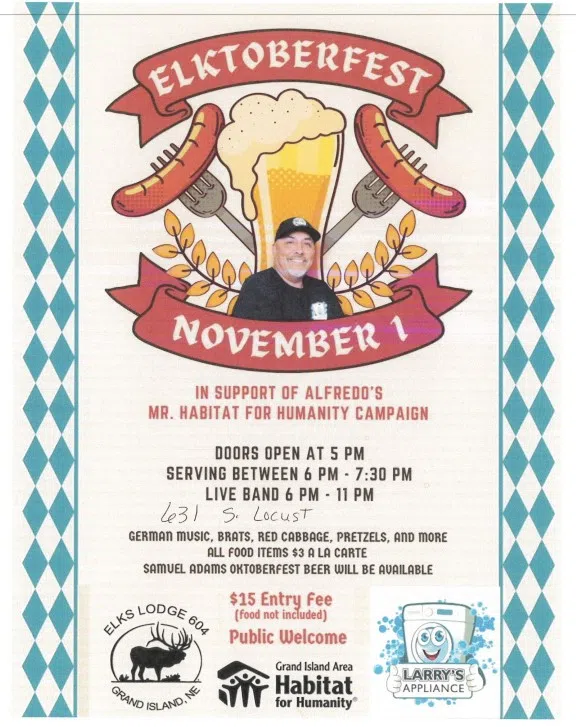 Join the Business Coalistion for Veterans at the Grand Island Elks Club, for a great fundraiser for a great organization on Saturday, November 1st. Doors open at 5 pm until 11 pm. Meet Mr. Habitat for Humanity, Alfredo Garcia and help support his mission to be made Mr. Habitat!