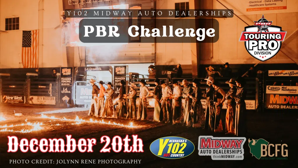 The 20th Annual Y102 Midway Auto Dealerships PBR Challenge is back December 20th at the Buffalo County Fairgrounds.